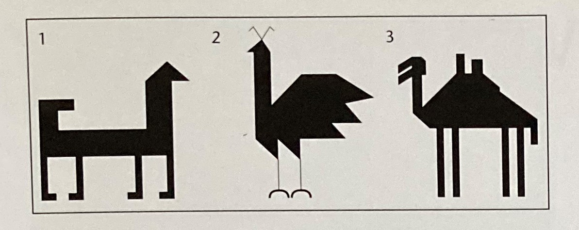 dog rooster and camel motifs.