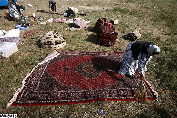 Persia North Tribal Woman cleaning Main Rug for the Yurt
