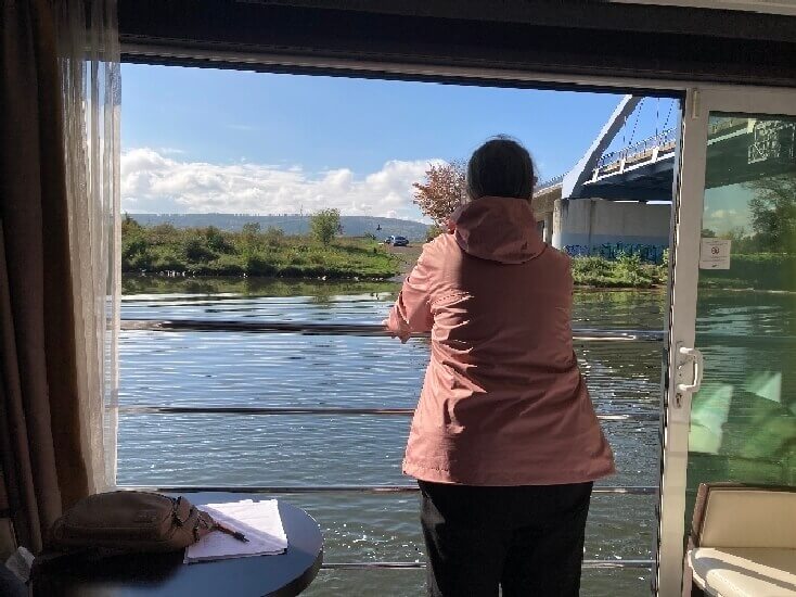 Hilary looking out of the stateroom