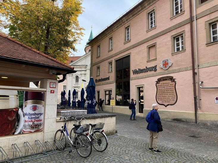 The sign translated reads: The cloister-brewery of Weltenberg is the oldest in the world. Since 1050 the noble barley juice was brewed in the monks traditional way. We remain committed to this cherished tradition. Weltenburger Kosterbier owes its great popularity to the high art of brewing – strictly according to the Bavarian Purity Law.